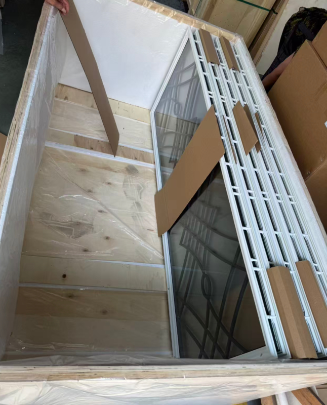Nuestro vidrio de puerta de entrada está cuidadosamente empaquetado para garantizar una entrega segura a nuestros clientes.